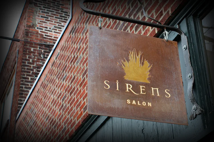 To further convey the welcoming nature of her salon, a direct visual influence was taken from the salons namesake of the Sirens' in Greek mythology. In much the same way good salon conversation draws repeat clientele, the Sirens were known for their ability to lure folks with their enchanting songs to join them in their lolling meadows of island beach grass. Therefore, it seemed appropriate to make a direct icon reference to represent the salon. Not only do the tufts of grass remind one of hair, but hairstylists have a reputation for their ability to provide their own grassy island of solitude in the form of a temporary psychologist couch, given their wondrous ability to listen.
